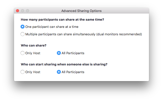 Even after you’ve started a meeting, there are some screensharing settings you can adjust from inside your meeting.
