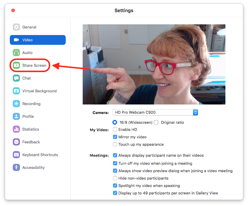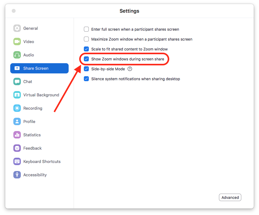 If you want to screenshare your Zoom window, there are two places you have to adjust your settings: in your Zoom account, and in the Zoom client app.